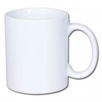 Kubek ceramiczny do nadruku metodą sublimacji. Zewnętrzna strona kubka pokryta jest specjalną powłoką przeznaczoną do sublimacji.
